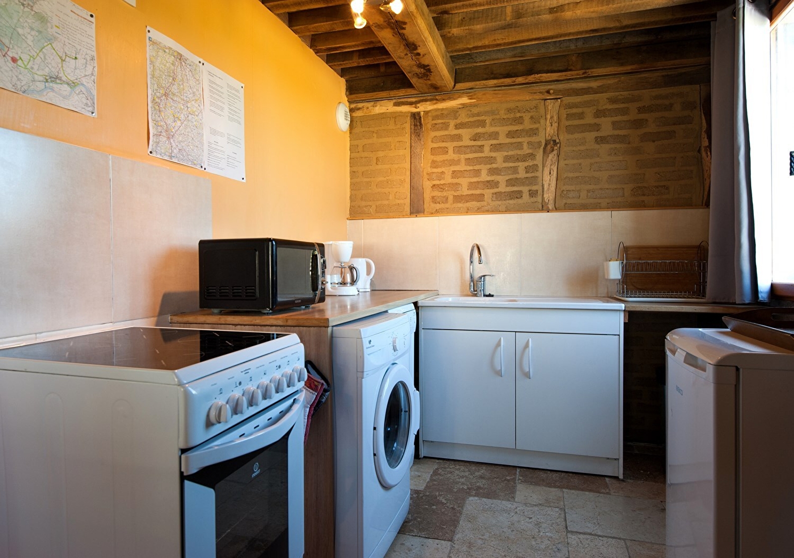 Composition: House comprising 2 gites (total independence) adjoining the owners' home and 1 other gîte (well separated and spaced building). Wireless. Fireplace + electric heating. Ground floor: living room-kitchen-lounge, separate toilet. 1st floor: 2 bedrooms (double bed 140x190cm + single bed 90x190cm / 2 single beds 90x190cm), bathroom (shower), separate toilet. Terrace + private parking. Garden shared by the 2 lodgings. Bicycle room + large shared land. Supermarket 7 km.