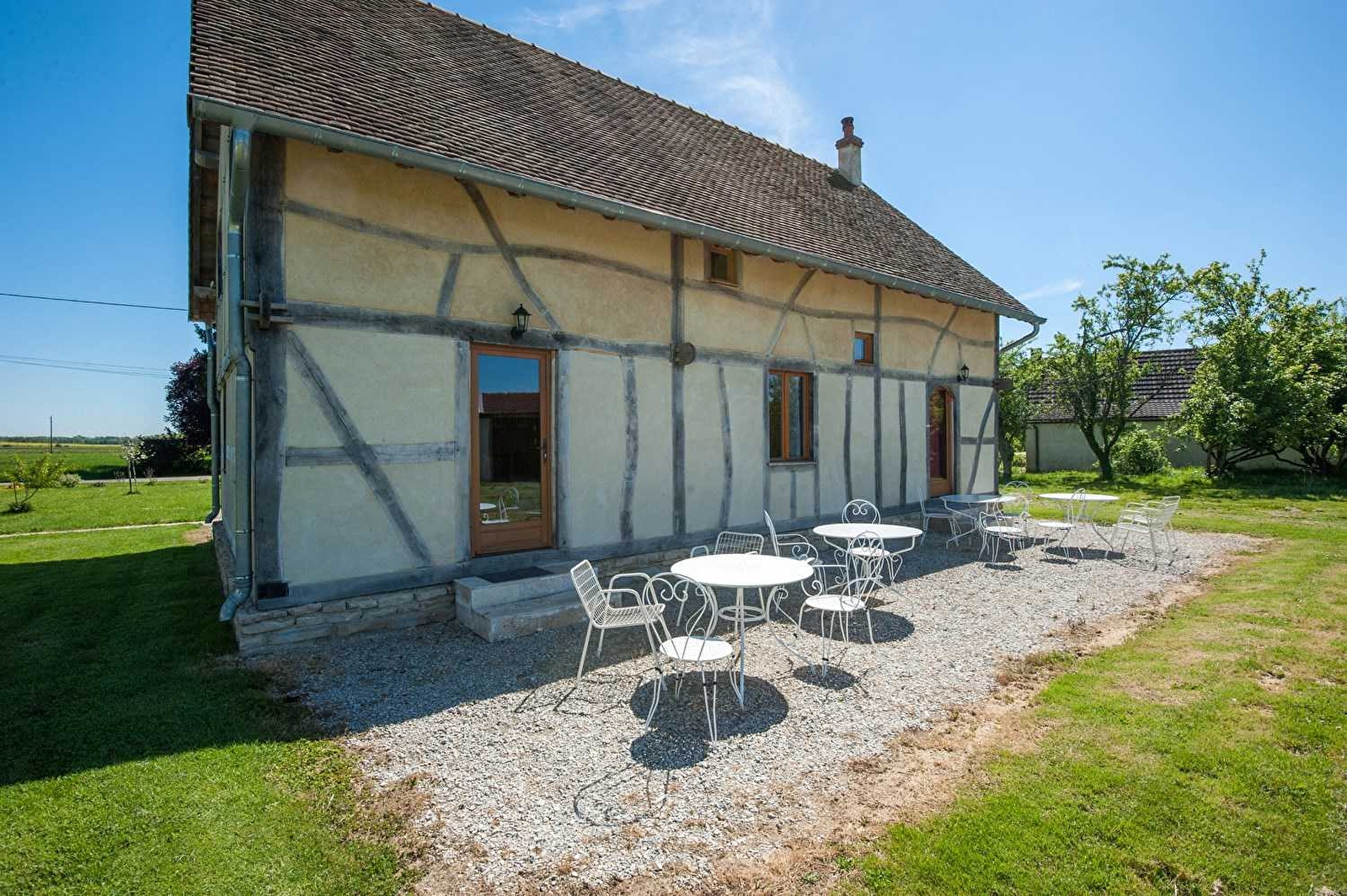 Very elegant contemporary residence fitted out in strict compliance with the traditional architectural codes of the country (built and furnished in bricks & half-timbered with cob, like an authentic period Bresse farmhouse) located on a former small family farm estate completely revisited into a comfortable resort (property including 3 gîtes). Total calm & tranquility in the heart of a peaceful small residential rural hamlet in the gentle Chalonnaise countryside, nestled on the immediate edge of fields & meadows, a stone's throw from a bucolic pond & the vast national forest of Gergy, immense "green lung »Territory to explore during soothing walks and mountain biking. Pleasant, unspoiled rural and natural environment, 3 km from the typical village of Allerey-sur-Saône, steeped in great history thanks to its income (located both on the banks of the Saône & the old Roman road Agrippa ), in turn major river port of the Beaunois country & its wines until the 17th century, important railway junction of passengers & goods (19th / early 20th) then one of the 20 rare "American hospital-camps" during the 1st world War. Spacious gîte with good comfort. Warm country cachet of style & character. Large private terrace opening onto a pleasant shared lawned & wooded garden, space reserved for the two lodgings nestled on a large, well-kept & flowered property with a fruit orchard (cherry trees, plum trees, peach trees, apple trees, pear trees… / picking possible).