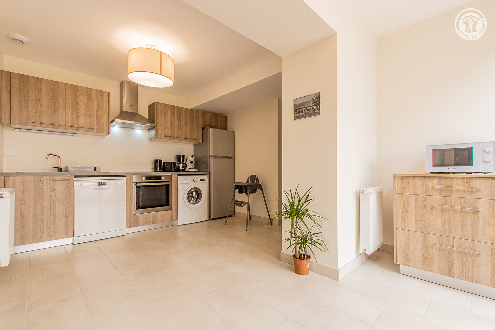 Composition: Detached house. Wireless. Gas central heating. Ground floor: kitchen, living room, living room, PMR bedroom (bed 2 p. 160x200cm), PMR bathroom (shower), PMR separate toilet. 1st floor: 4 bedrooms (double bed 160x200cm / double bed 160x200cm / 2 single beds 90x200cm / 4 single beds 90x200cm including 2 bunk beds), 2 bathrooms (showers), separate toilets. Land + double terrace (one partly sheltered) + private parking. Supermarket 6km. Amenities 9 km.