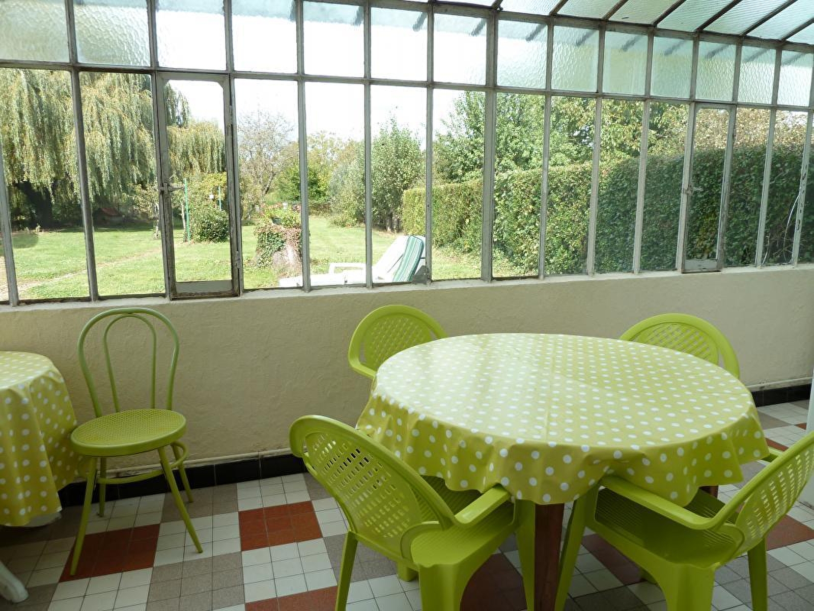Composition: Detached house with outbuilding (laundry room/summer kitchen). Fiber optic Wi-Fi. Oil-fired central heating. Ground floor: kitchen, living room, bathroom (shower/toilet), shower room (shower). First floor: 4 bedrooms (3 with 1 double bed (140x190cm) / 2 single beds (90x190cm), separate toilet. Double terrace, one of which is under a veranda. Enclosed grounds (500m²) on 2 hectares of private land. Private parking (covered carport). All amenities 10 km away.