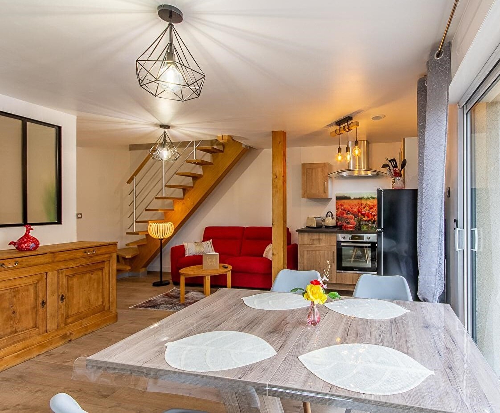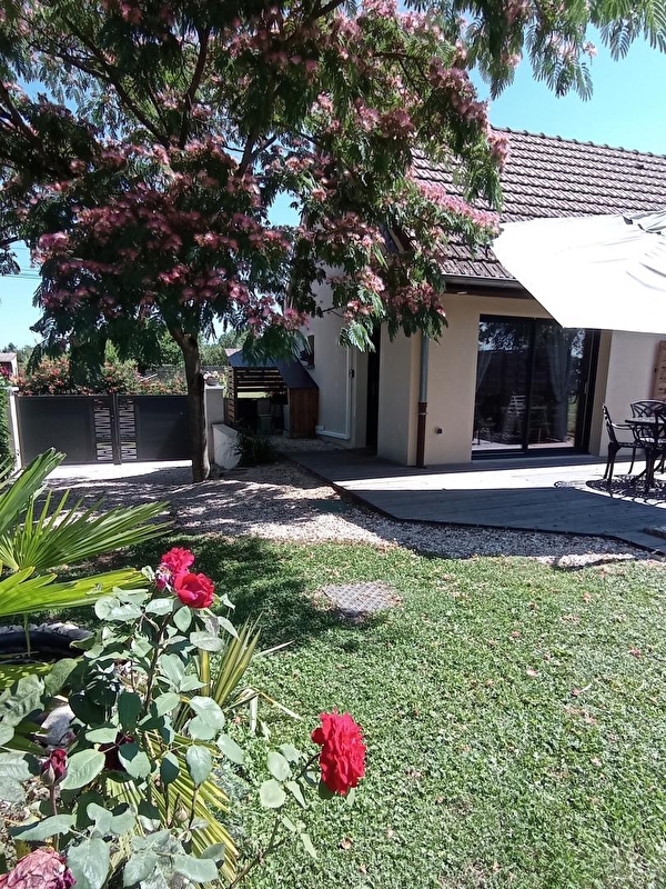 Charming contemporary house with character, fitted out in the spirit of a typical half-timbered "cottage" - respecting the local Bresse architecture - located in the heart of a small residential village along the greenway (connected to EuroVelo6) & the Saône (a true paradise for kayakers and fishermen, renowned for its famous catfish, pikeperch, carp…). In the heart of the countryside, within a preserved rural and rural setting, on the edge of fields, rivers and meadows, close to vast state forests (including the Bois de Bissy a stone's throw away), in the hollow of a protected natural site classified " Zone Natura 2000 "for its remarkable ecosystem (including an exceptional ornithological reserve rich in 160 species and many rare plant varieties). Very comfortable cottage with a warm, contemporary country character with Nordic inspirations. Zen and gentle atmosphere. Very charming. Cozy restful rooms nestled under the roofs marrying the spirit of cozy "cabins" with the exotic atmosphere of old country residences. Complete quality equipment. Cocooning & cozy. Charming little intimate enclosed garden (nestled out of sight), carefully vegetated and very flowery, sheltering a small pool (without danger) and a large terrace both exposed and shaded under an albizia (which gave its name to the gîte …).