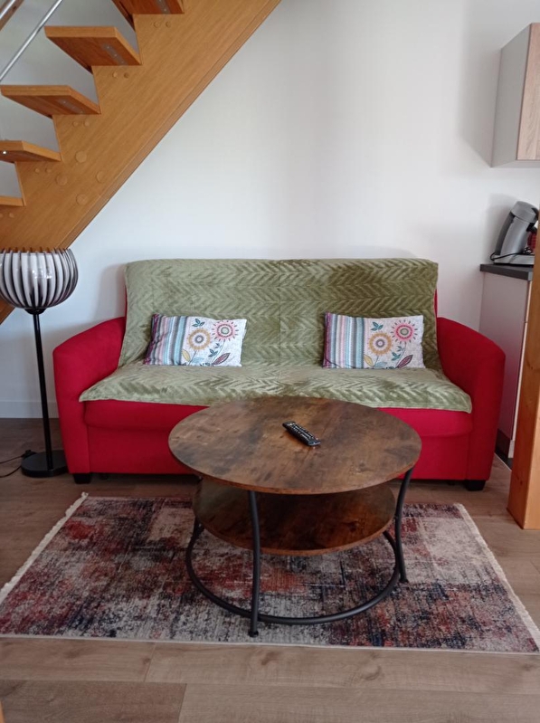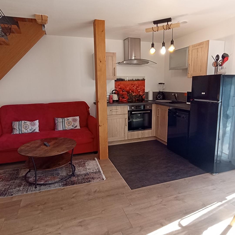 Composition of the gîte: Detached house on 2 levels (duplex) adjoining the owners' house (total independence without vis-à-vis). Wireless. Heating by Heat Pump. Air conditioner. Ground floor: living room-kitchen-lounge (sofa bed 2 p. 140x190cm as an extra), bathroom (shower), separate toilet. 1st floor: 2 bedrooms (double bed 160x200cm / 2 single beds 90x200cm). Enclosed garden + terrace + private parking. Bicycle storage room available on the owners' garden side. Shops and services 6 km. Golf 18 km. Train station 15 km. Le Creusot TGV station 48 km. Floor area: 60m² (including the attic areas under a height of 1.80m).