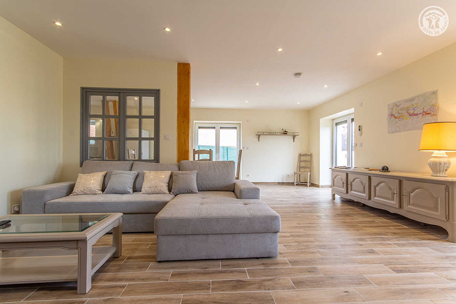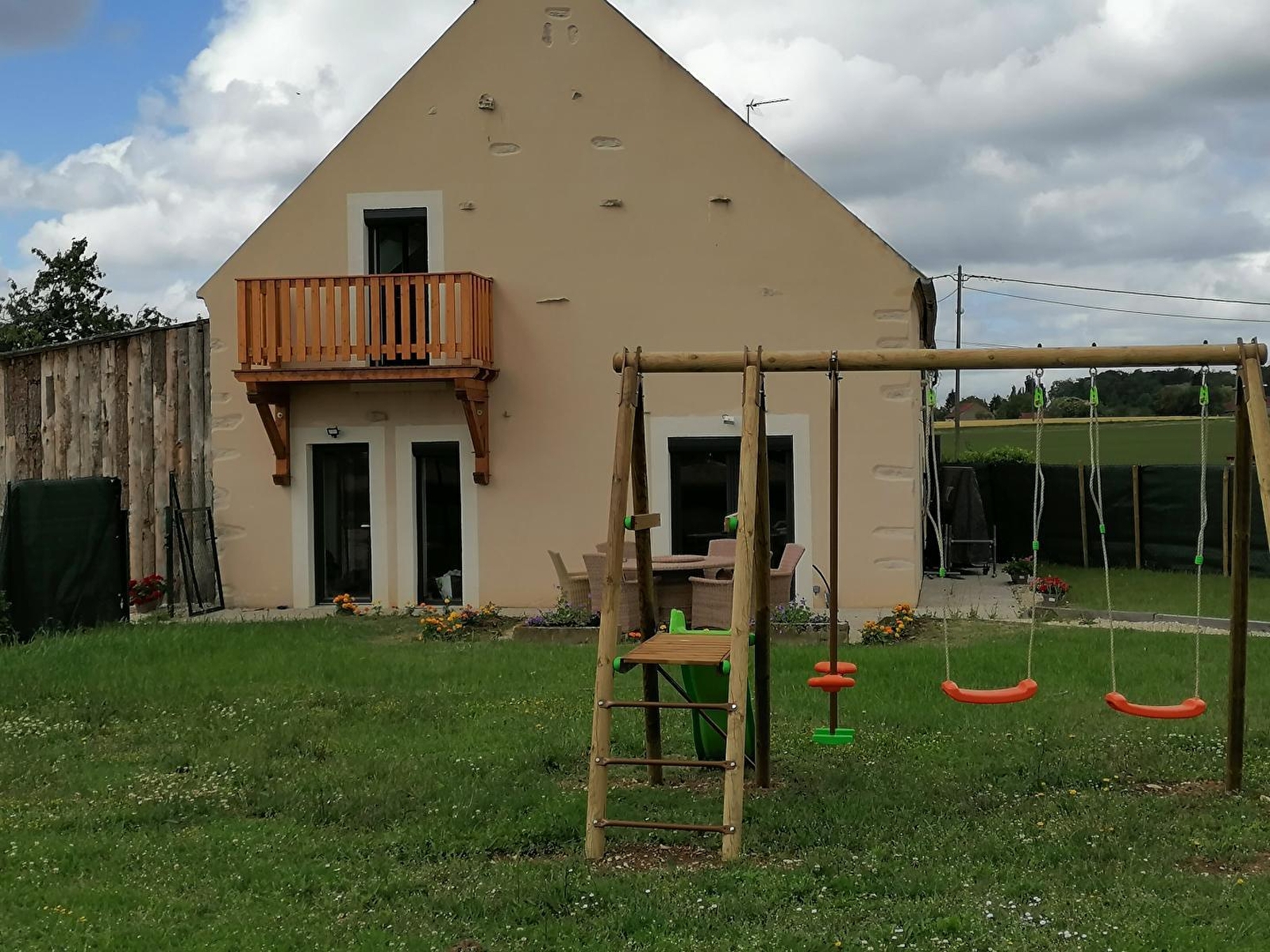Hervé, passionate professional in the wine industry, and Thérèse welcome you to a comfortable gîte nestled in an authentic 18th century country farmhouse, longère type, fully restored with care. In the heart of the Chalonnaise countryside, in a small quiet residential hamlet nestled in the hollow of a bucolic rural agricultural setting near the vast Gergy forest, a true green lung, dotted with hiking trails in the middle of nature and ponds. Privileged location for all nature and bird lovers, close to several protected sites classified as "Zone Natura 2000": remarkable ecosystem of the Doubs (paradise for kayakers & fishermen, famous for its catfish, zander or carp / exceptional ornithological reserve rich in 160 very rare plant species and varieties); alluvial meadows of the Saône (sheltering many migrating or nesting birds); vast forest complex close to Cîteaux. Spacious gîte with very good comfort. Warm country character, combining a resolutely contemporary spirit and "shabby chic" influences. Delightful "mix & match" between traditions and modernity in a zen & soft atmosphere. Large living room. Pleasant private garden opening onto the fields (not overlooked), with a terrace (exposed or shaded), a pétanque court, a ping-pong table and a swing. Beautiful open view over the surrounding countryside.