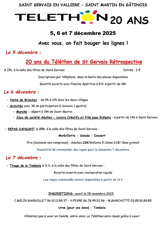 The communes of Saint-Gervais-en-Vallière and Saint-Martin-en-Gâtinois are joining forces in support of the telethon. Over 3 days, a wide range of events and activities will be on offer. Bun sales, tombola, games... there's something for everyone!